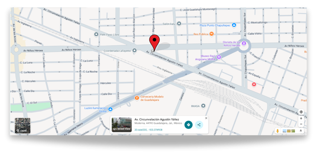 Intersección Av. Niños Héroes y Circunvalación Washington, Col. Barrera CP 44150, Guadalajara, Jalisco.